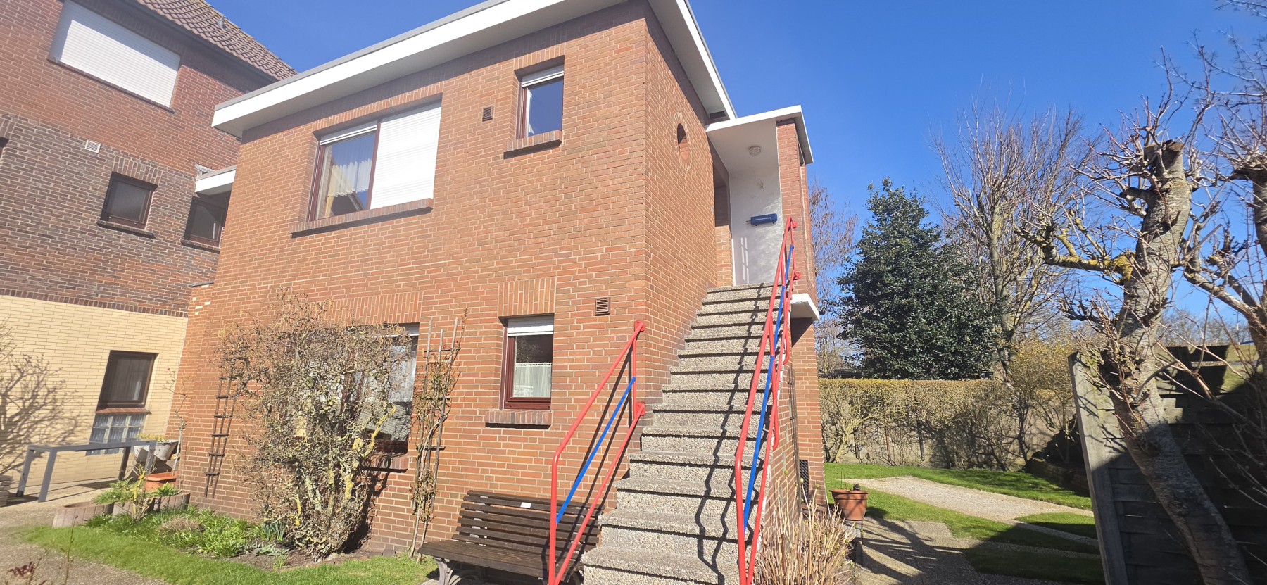 Ein besonderes Highlight ist die Gemeinschaftsterrasse sowie der Garten mit Liegewiesen, die zum Entspannen an der frischen Nordseeluft einladen.