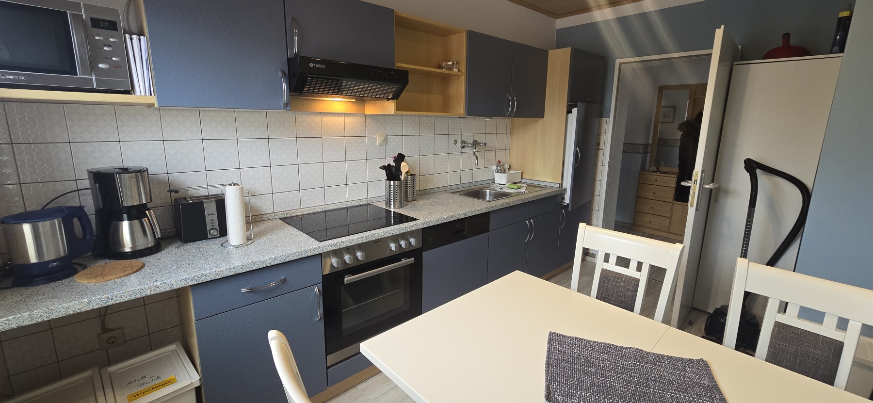 Die separate Küche ist vollständig ausgestattet und bietet eine Sitzmöglichkeit für bis zu Fünf Personen – perfekt für gemeinsame Mahlzeiten.