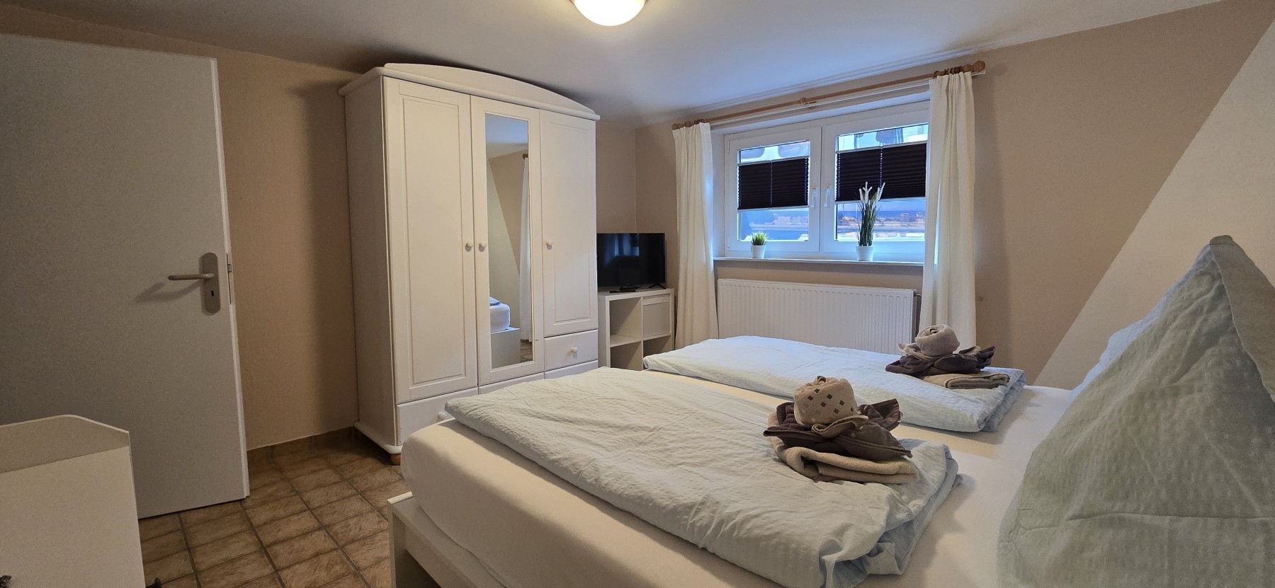 Die Wohnung verfügt über Zwei separate Schlafzimmer, die jeweils mit einem komfortablen Doppelbett ausgestattet sind.
